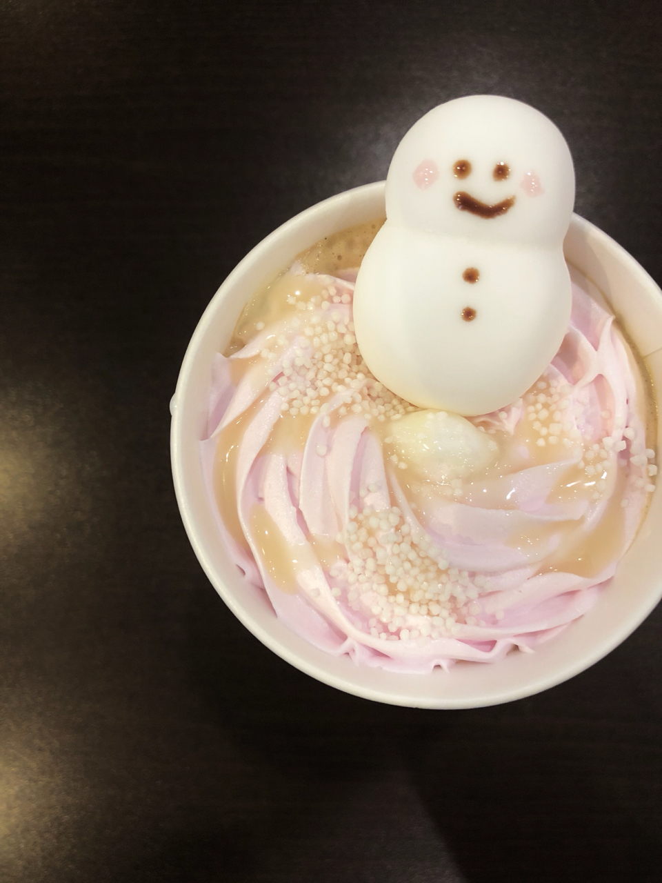 スノーマンのマシュマロの顔は、店員さんの手書きなので、毎回顔が違うんですって