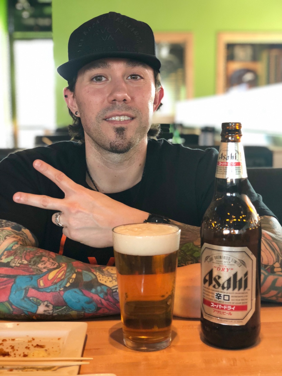 毎回アサヒビールを頼んだときは、ポーズをとる彼。