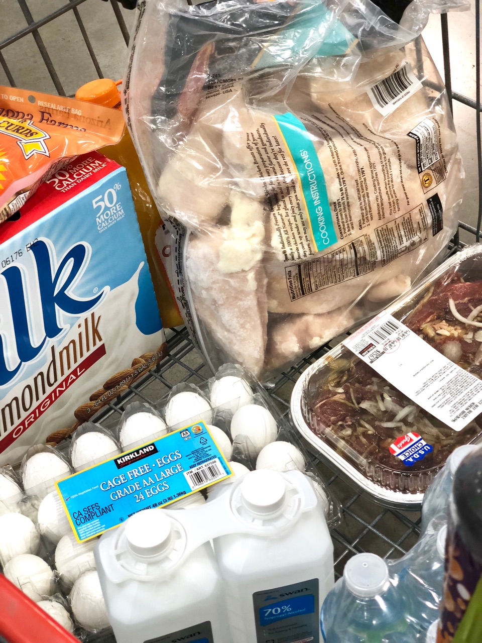今回のお買い物は、ジャスティンのお弁当用や卵、いつものisopropyl alcohol(”万能アルコールスプレー”のブログは、こちらから★)、チーズ、アーモンドミルクなどなど。