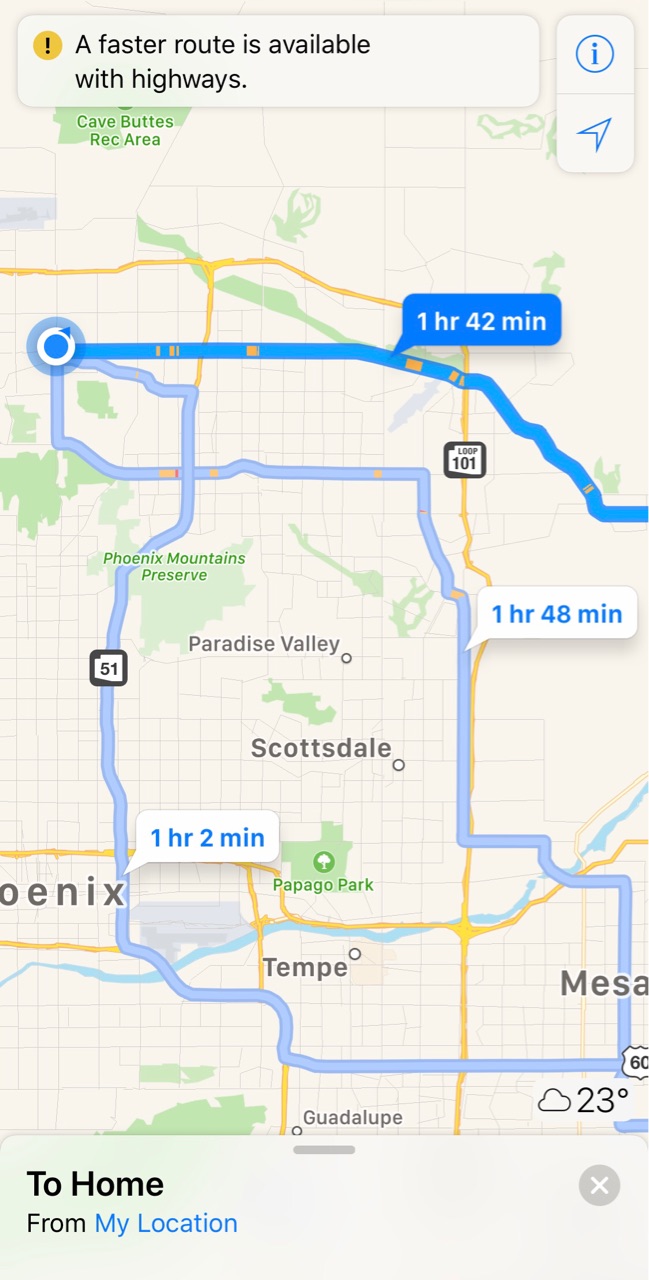 North Phoenixから我が家までは約80キロの道のりで、1時間40分かかります