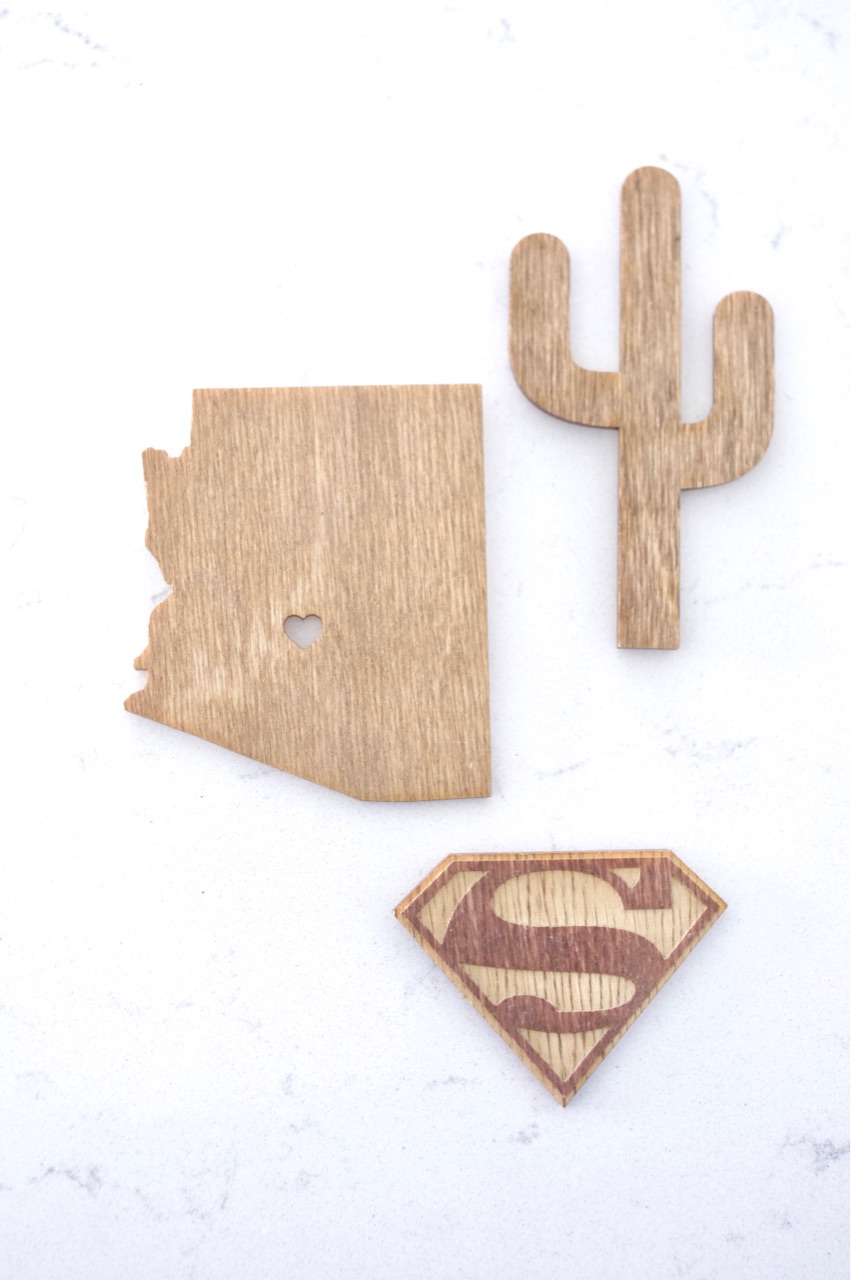 アリゾナ州の形に、今いる居場所に❤︎の穴が開いてる可愛いマグネットと、カクタスマグネット