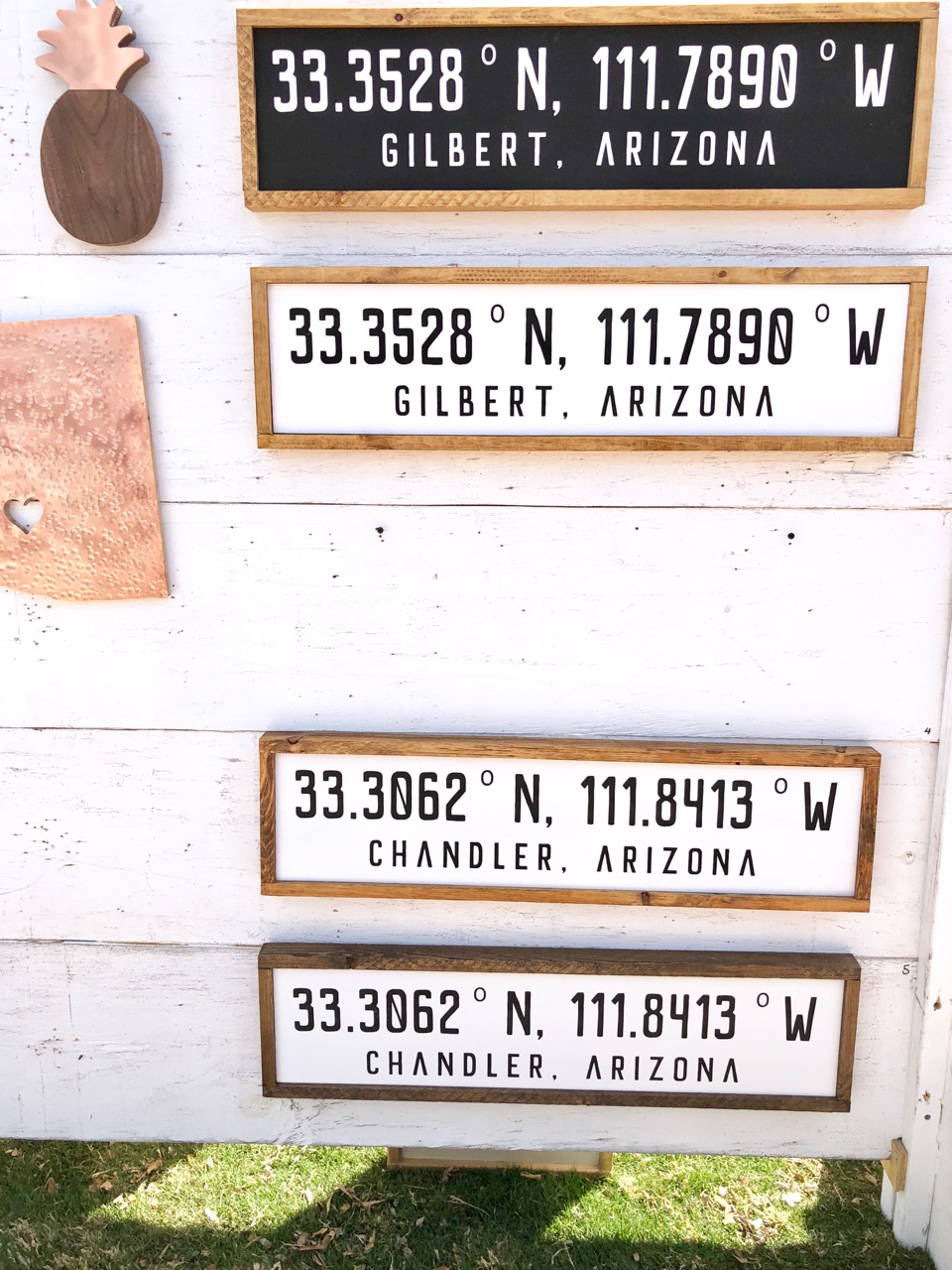 この緯度経度が書かれたサイン↑は、飾ってあるのはChandlerとGilbertですが、カスタムで作ってくれるそうです