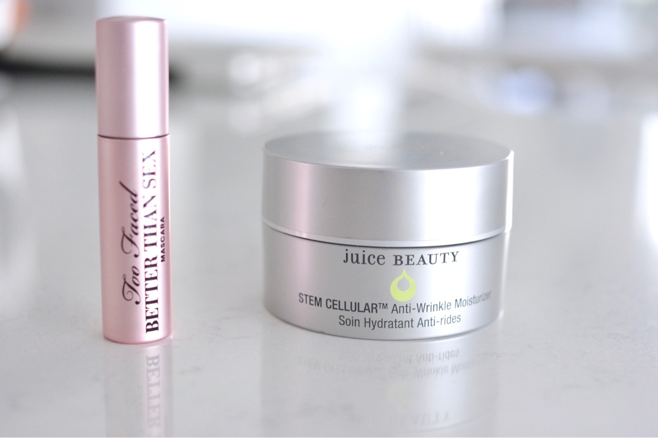 Too Faced のBetter Than Sexマスカラと、Juice Beautyのモイスチュライザークリーム↓