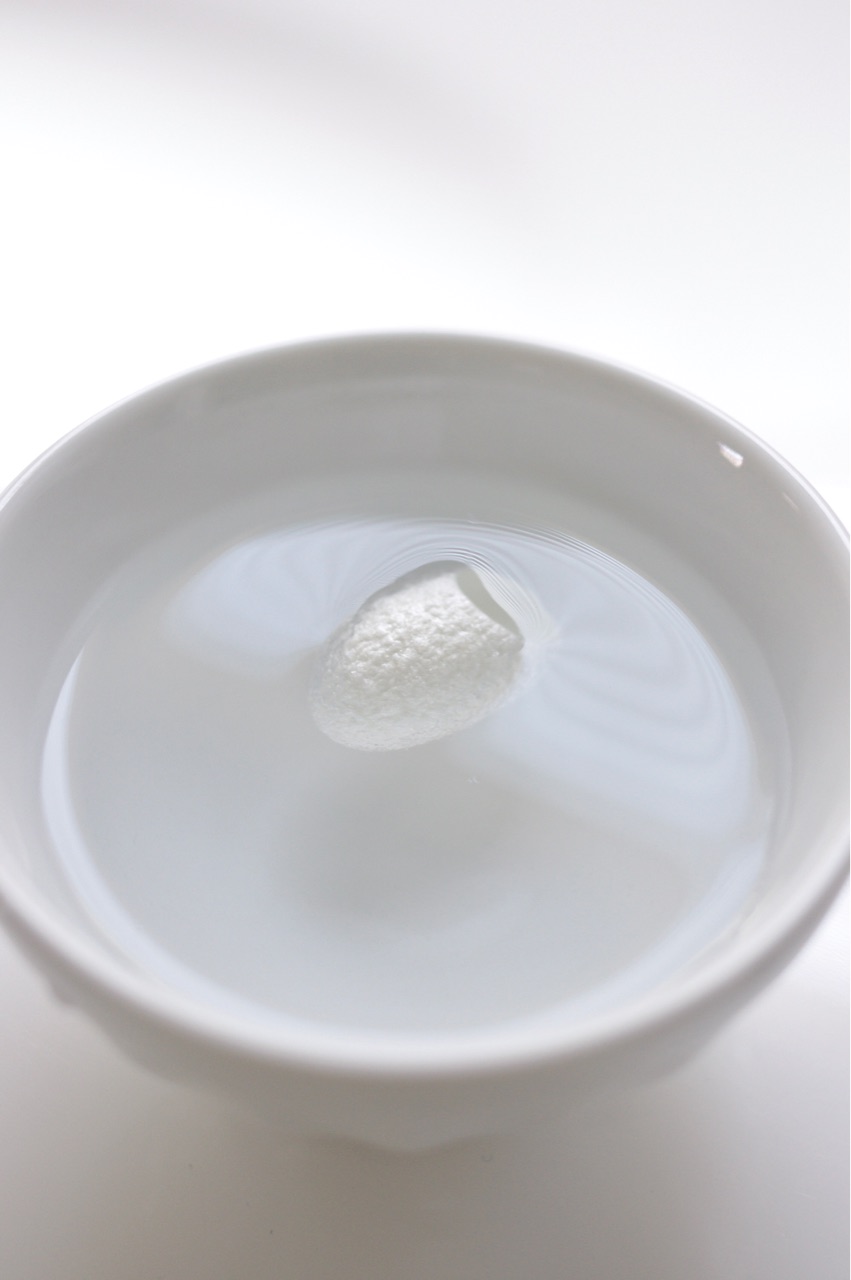 ”40℃ぐらいのお湯に2、3分まゆ玉を浸す”と書いてあります↓