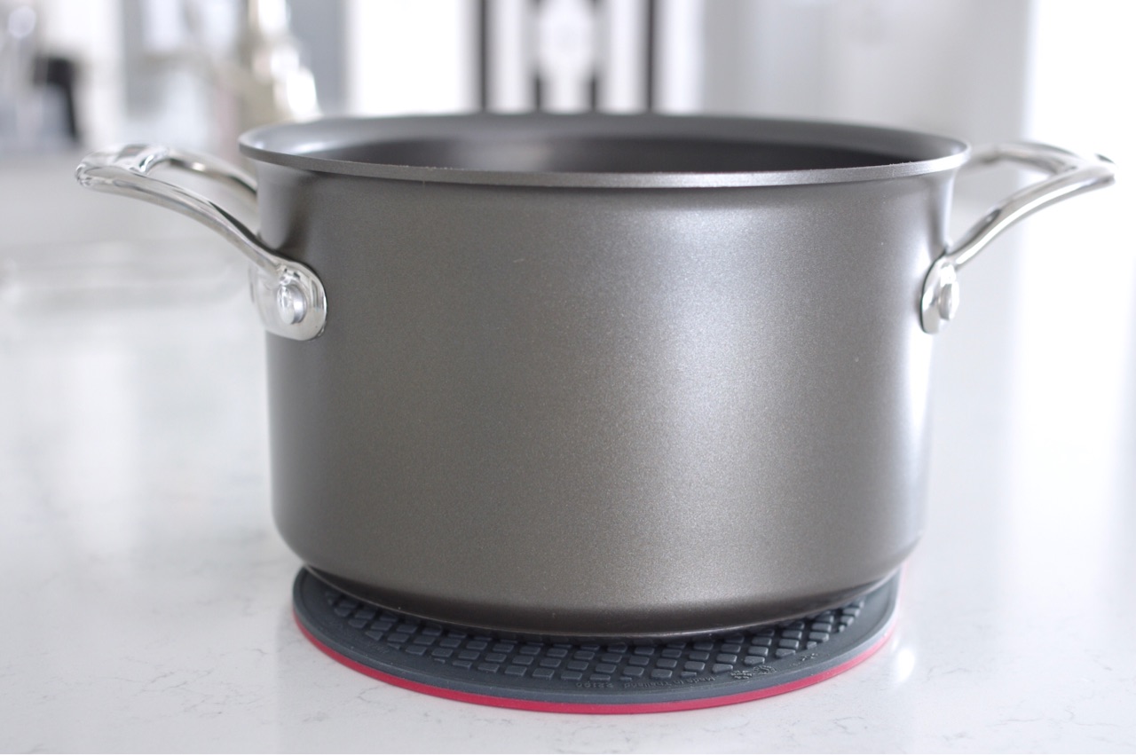 キッチンからダイニングテーブルに鍋やフライパンを運ぶとき、鍋敷きを鍋やフライパンにくっつけたまま運べるんです。