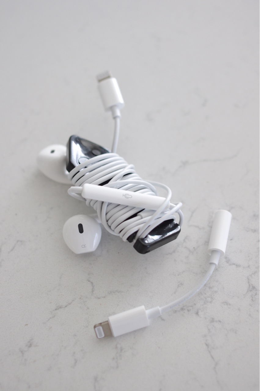 今私が使っているiPhoneは、ヘッドホンジャックの穴がないので、付属の変換アダプターも一緒に携帯しなくてはいけないんです↓