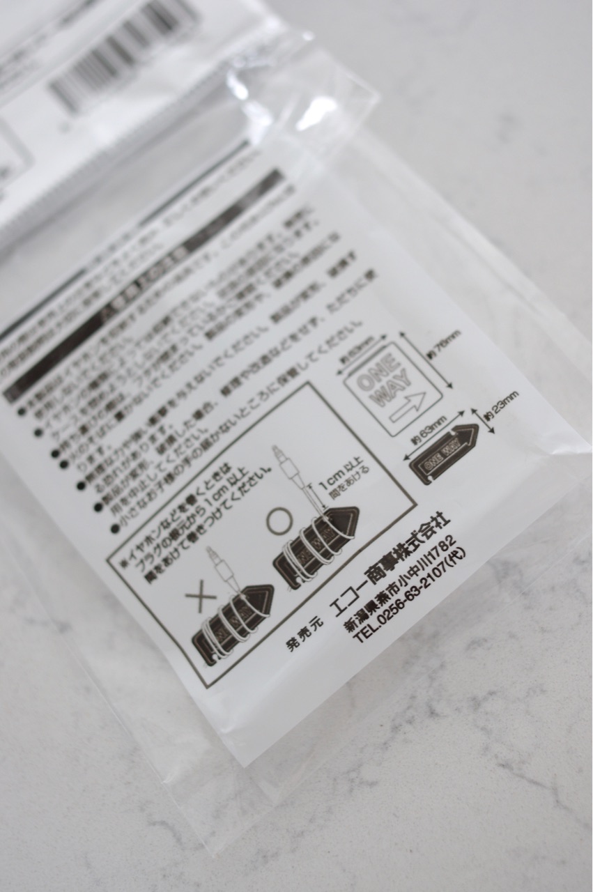 パッケージの説明書によると、”プラグの根元から1cm間を開けてコードを巻き付けてください“と書いてあり↓