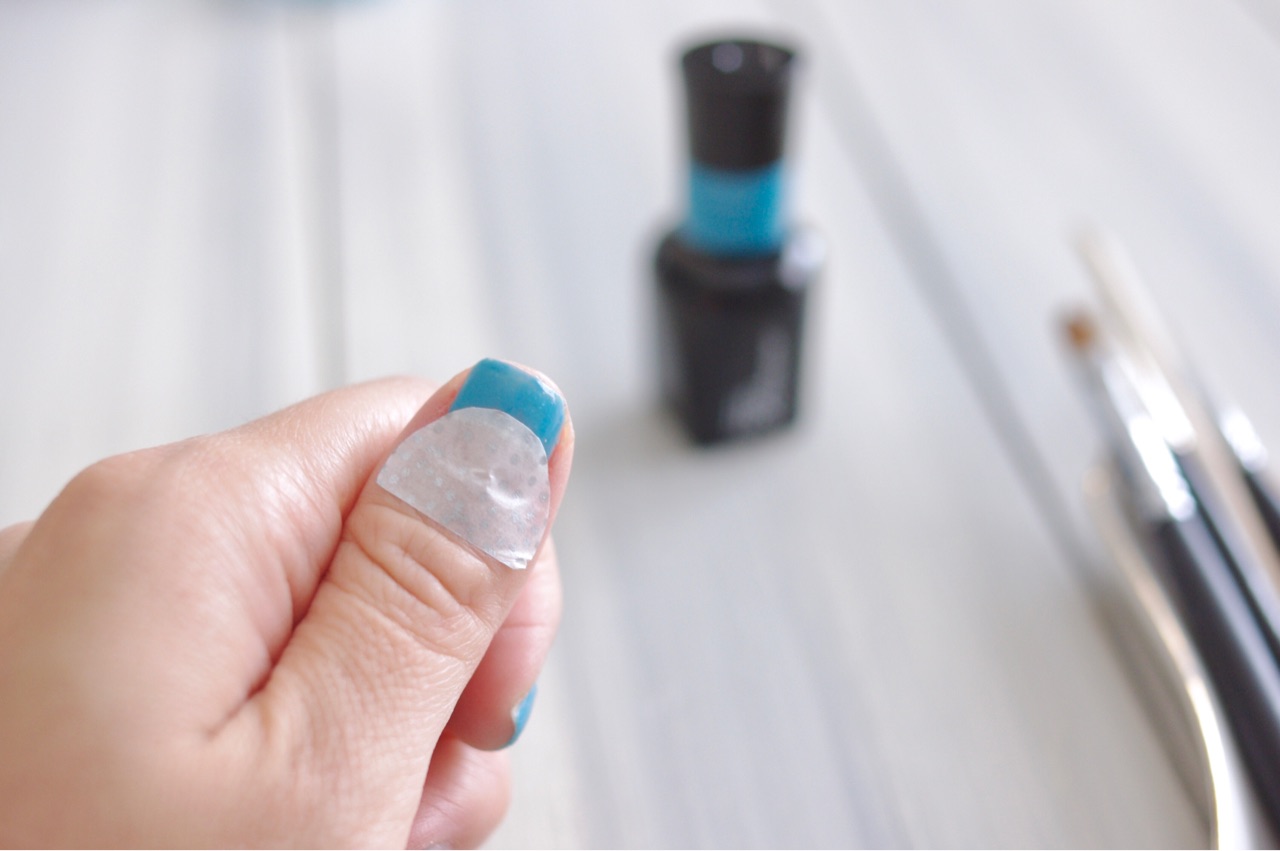 切り終わったら、マスキングテープを剥がして、親指の爪に貼り付けます。