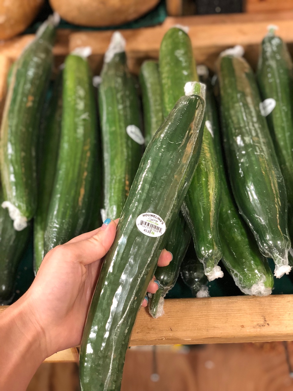 で、グロッサリーのオーガニックコーナーに売っている、ラップで包まれているこちらの胡瓜↓