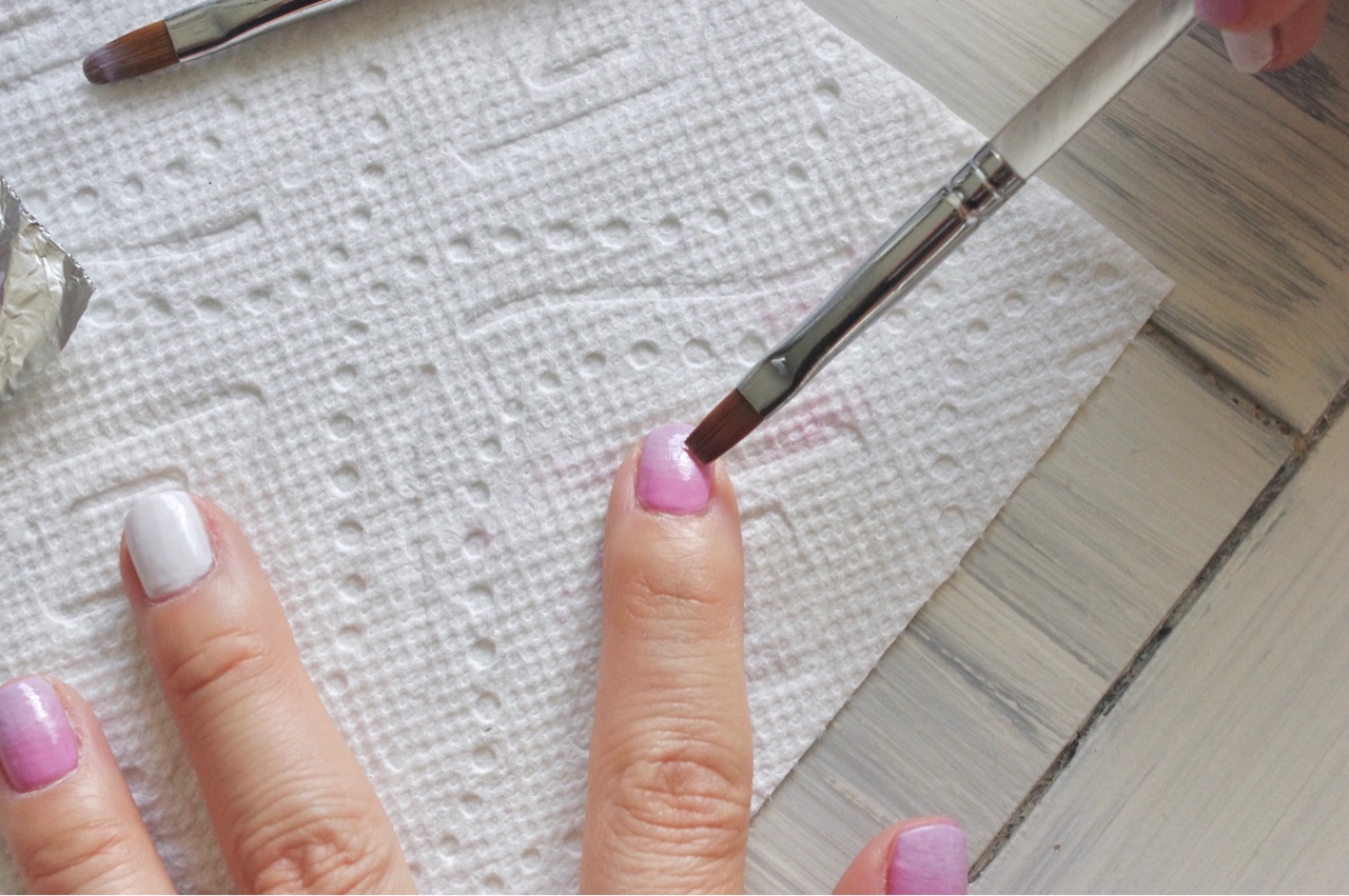 そして、アルコールスプレー(”万能アルコールスプレー”のブログは、こちらから★)を含ませた新しいブラシを使って、フレンチネイル部分から爪の際に向かってタップするだけ↓